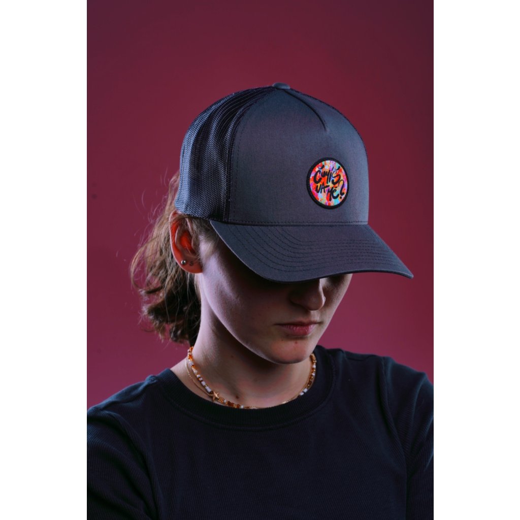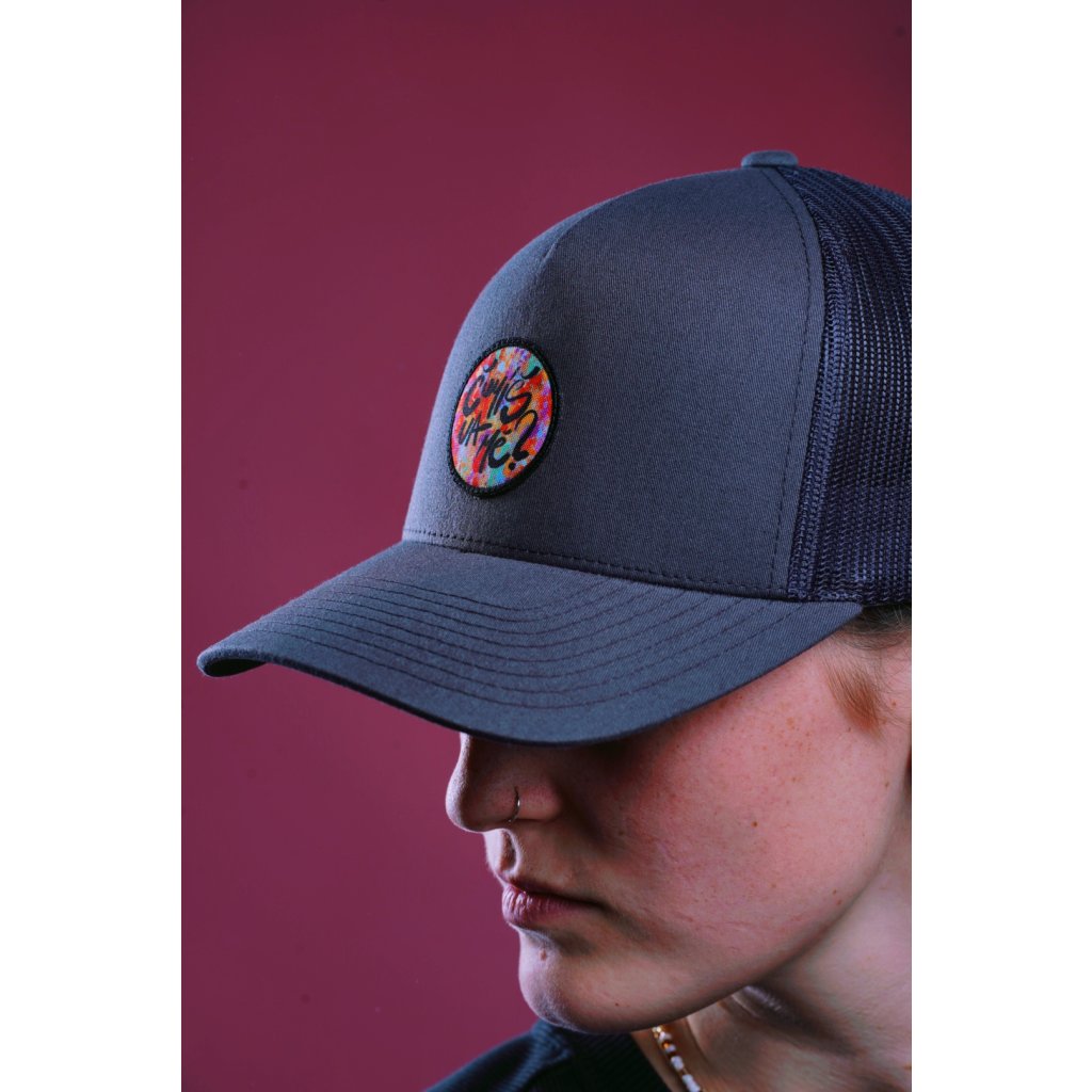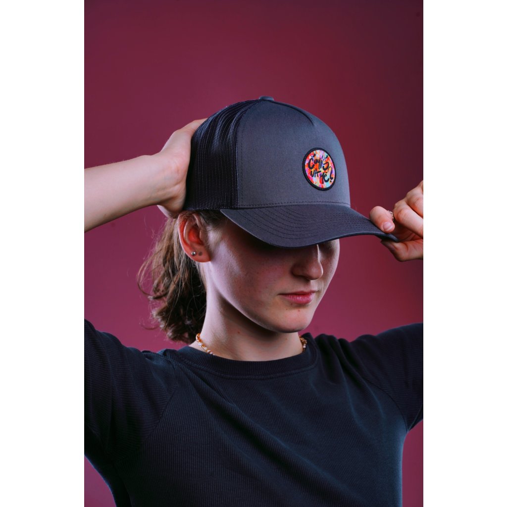 Čumíš na mě Retro Trucker tmavě šedivá s nášivkou módní doplněk | na každý den