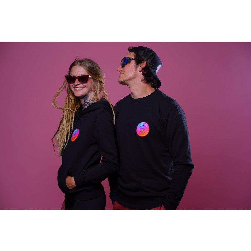 Měkká teplákovina z 65 % bavlny a 35 % polyesteru, spuštěná ramena a česaný vnitřek zajistí maximální pohodlí na každou cestu.